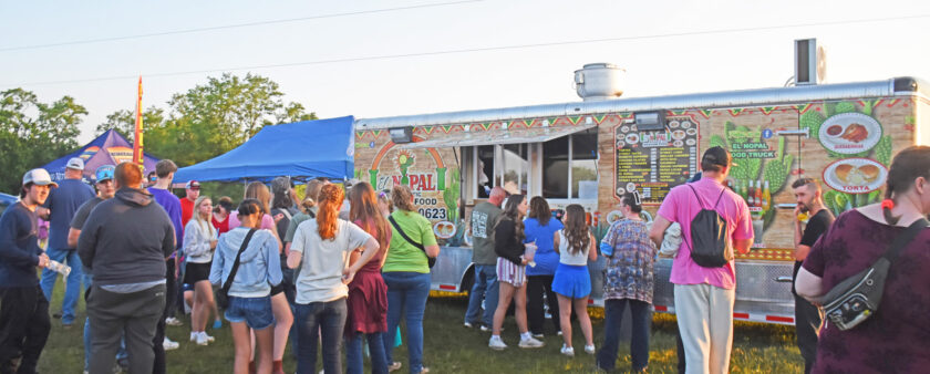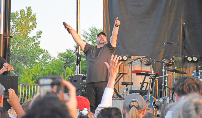 Bethany, MO: (First photo) Micah Tyler takes to the main stage Saturday evening after the rains. The crowd now ready to praise after a rain-soaked morning passed over Bethany. (Second photo) Ben Fuller closed the show, his performance going on into the night. (Third photo) food trucks lined one side of the stage, El Nopal, a popular Mexicans restaurant closed down Saturday in order to operate their food truck during the event. (Fourth photo) after the rains passed people gathered to the main stage located on grassy field on the property. (Fifth photo) amongst the thousands of fans in attendance many were from far away, making the campgrounds a busy place. The event featured many spots to camp and several campsites throughout the grounds.–Submitted & Republican-Clipper photo