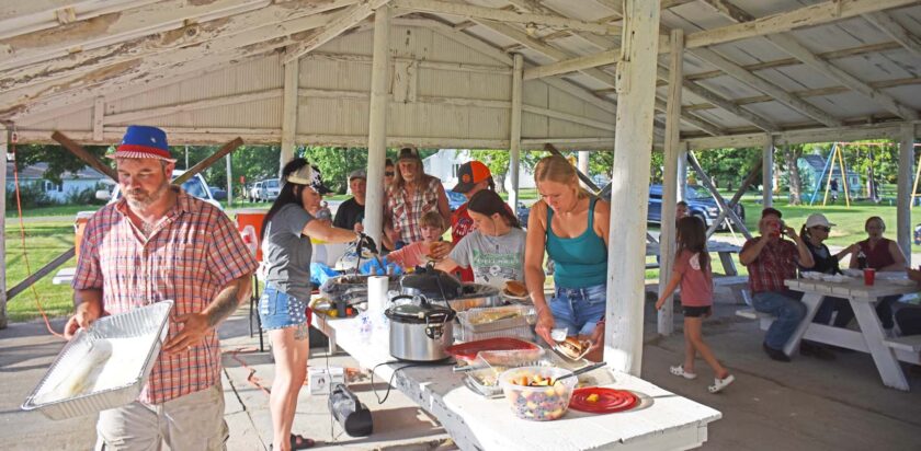 McFall, MO: The town of McFall celebrated their 4th of July by gathering at the ball field in McFall. Scott from Scotty B Eats refills a new batch of fish for the hungry group. A fireworks show capped off the night. — Republican-Clipper photo