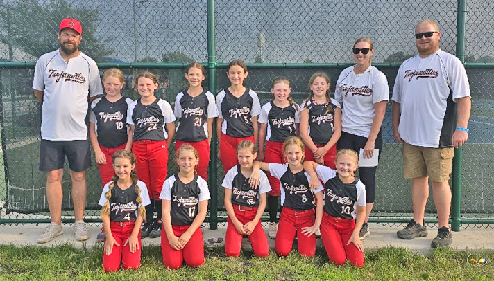 The 16u Trojanette team finished out their season the weekend of July 20. Their final record for the season was 21-13. Front Row: Caitlin Ledford, Ella Callaway, Paige Heldenbrand, and Sophie Greer; Back Row: Mia Jackson, Emilee Dulcan, Bea Bowden, Kate Wolf, Lexi Hunter, Ambrey Hunter, and Kenzie Grooms. Coaches for the team were Jarod Jackson and Justin Greer.