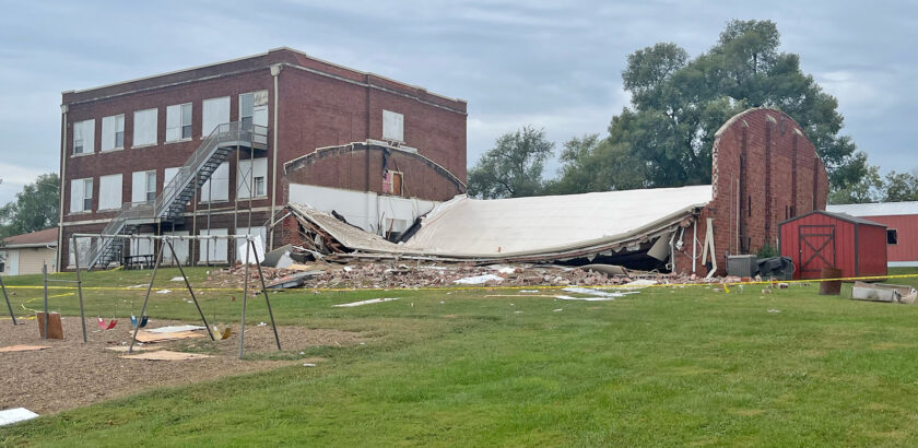 Jameson, MO: The North Daviess school sustained heavy damage Saturday night when the gymnasium roof collapsed at about 8:54 p.m