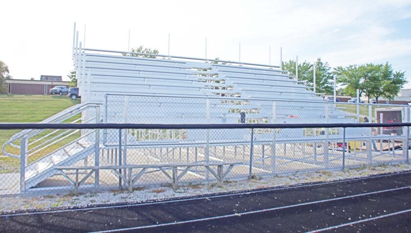 Bethany, MO: Just in time for football season the South Harrison R-II west side Memorial Stadium visitor’s bleachers seating section is all but completed. The new cheering grandstand for the away team replaces the old and worn out benches and sets in the same location.–Republican-clipper photo