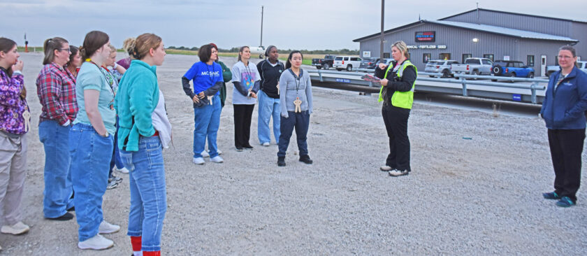 Jessica Elliot, Public Liaison for the hospital, (center right) instructs the medic students on what there role will be during the drill. The student added realism to the drill by stepping in and acting as the people caught in the accident.