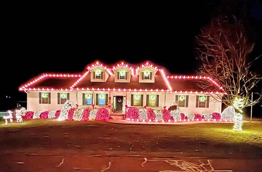 (Right) Lisa and Steve Miles at 1205 South 15th Street won third place in the lighting contest. They used red and green colors along with traditional Christmas decorations to bring a classic Christmas feel.