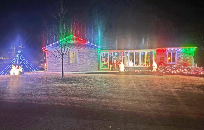 Bethany, MO: (Left) Judy and Antonio Solorio house at 2815 Grand Avenue won first place in the Bethany lighting contest. Their yard was filled with bright colorful lights and depicted several scenes from movies and T.V. specials. The house even had a circling Santa that streaks across the sky.–Republican-Clipper photos